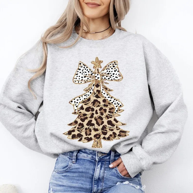 Get into the holiday spirit with our popular Leona – Leopard Christmas Tree Sweatshirt, designed for anyone who loves cosy comfort with a stylish edge. Featuring a playful leopard-print Christmas tree with gold accents and a festive bow, this best-selling piece brings a bold, modern twist to classic holiday fashion. Perfect for family gatherings, casual outings, or simply adding some sass to your seasonal wardrobe.