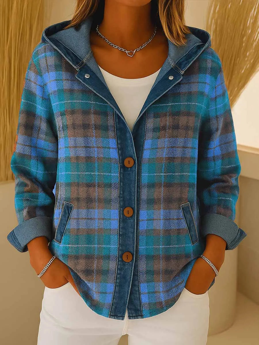 The Karline – Denim Hooded Check Jacket is more than just a casual layer — it’s a wardrobe staple designed to elevate your everyday style with ease.